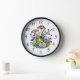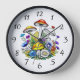Colourful watercolor illustration of a mushrooms and flowers in yellow, red, purple and blue.