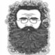 Whimsical Mans face Beard Moustache Flowers Art original ink drawing sticker