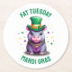 Whimsical Mardi Gras Fat Tuesday Hippo Sticker Round Paper Coaster