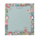 Perfect for anyone who loves mice and whimsy, this notepad can be personalised with a name for a custom look! Woodland forest mice wearing either a scarf or Santa hat, are scurrying among snow-dusted leaves, ferns and flowers on a dark teal blue background. There are also berries and mushrooms for each mouse to enjoy! Greens, pinks and teal set off the grey mice. Reads, "From the desk of" at the top of the snowy light teal note area. Perfect for those Christmas notes or to brighten your office during the holidays! Original artwork by Tuzi Williams.