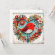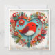 This charming design features a bright red bird centered inside a heart-shaped frame, surrounded by playful flowers, leaves, and sweet decorative details. The layered collage look, folk art style, and lively mix of red, turquoise, cream, and coral create a cheerful, handcrafted feel that stands out beautifully.
