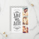 Announce your date in style with this 3-photo save the date card featuring bold typography. The reverse features a striped pattern and an additional photo and text.