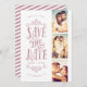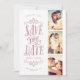 Announce your date in style with this 3-photo save the date card featuring bold typography. The reverse features a striped pattern and an additional photo and text.