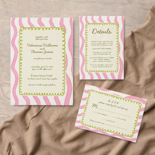 Whimsical Modern Pink & Green Wedding Thank you Invitation