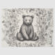 A charming design featuring a whimsical, monochromatic bear nestled among vibrant flowers, blending nature and playfulness in a unique and artistic way.