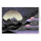Whimsical Moon and Mountains Abstract Art