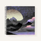 Modern abstract art with dreamy scene of big moon and mountain landscape.