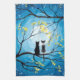 Two cats sitting on a branch watching the full moon with a blue sky filled with stars. The branches of the trees surrounding them with small yellow flowers. Black tuxedo cat and a bi-colour white and grey spotted cat. Original Modern Whimsical Acrylic Painting by Donna Leger. All Rights Reserved. ©irony designs