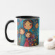 Description: Celebrate the joy of motherhood with this vibrant and uplifting mug, featuring a beautiful illustration of a smiling mother and her two happy children. The artwork is set against a warm, textured background of orange, yellow, and turquoise hues, creating a sunny and cheerful atmosphere. The mother, with a joyful expression, wears a bright blue dress adorned with colourful flowers, while her children stand beside her with big smiles. One child is dressed in a red shirt with playful white patterns, and the other is in a blue dress with intricate designs. The illustration is enhanced with charming floral accents and whimsical patterns, capturing the essence of a loving and supportive family. The back of the mug carries an inspiring message: "I am confident in my ability to nurture and guide my children, helping them grow into strong and kind individuals!" Personalise this mug with your name or a special message, making it a meaningful gift for mothers or anyone who celebrates the beauty of family.