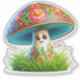 A vibrant mushroom with a joyful face stands amidst lush green grass, decorated with colourful floral patterns. The whimsical design and bright colours create a cheerful atmosphere, perfect for sparking imagination in a playful setting.