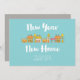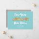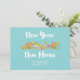 Moved home in the new year? Share your new address with this fun whimsical announcement card. This design features the phrase "new year new home" in white brush lettered font, a row of colourful hand drawn houses, all against a light blue background. Your address details are at the bottom in white. The backer for this design is in solid grey.