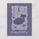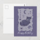 Send a little magic with this cute, artistic folk art - happy birthday - postcard. Featuring a peaceful, sleeping cat adorned with delicate heart and leaf patterns, this design sits under a celestial canopy of stars and a crescent moon.