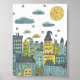 Whimsical Night Cityscape – Playful Hand-Drawn Art Poster