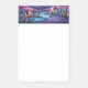 Sticky notes with a beautiful illustration. Whimsical and fanciful vibe. A lovely landscape of trees, mountains and a winding river. Mystical vibe.