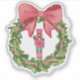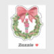 This festive and charming design features a traditional nutcracker figure with a modern twist, dressed in a pink and green uniform and holding a striped candy cane. He is centered within a lush watercolor Christmas wreath decorated with red berries and a beautiful oversized pink bow. This whimsical and colorful artwork is perfect for adding a touch of holiday magic to your greeting cards, invitations, home décor, and other Zazzle products.