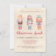 A lovely watercolor design with three whimsical nutcrackers on an old paper texture background in the front and a pattern of ballerinas, Christmas trees, rocking horses, and ballet shoes on the back of the card. Personalise the invitation with your Christmas lunch details. You can change the font and font colours to suit your style.