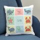 This adorable ocean-themed personalised throw pillow features doodles of sketched whales, jellyfish, starfish, and crabs! These playful designs showcase soft, rounded lines and cheerful expressions, set against pastel-coloured backgrounds like mint green, baby pink, powder blue, and pale yellow.