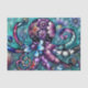 Whimsical Octopus Floral Teal Coastal Decoupage Tissue Paper
