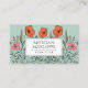 Whimsical Orange Pink Cute Floral Bouquet Green Business Card