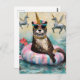 Whimsical Otter and Unicorns Floating on a River Postcard