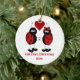 A cute ornament for a newly wed couple. It features a cartoon ladybug couple holding a heart on the front. Customisable text is on the bottom. The other side has a space for your custom photo. Great wedding or Christmas Gift.