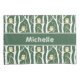 A delightful pattern featuring charming owls perched on repeating birch trees. The palette includes shades of green, sage, white, and brown, evoking a tranquil forest scene filled with whimsy.