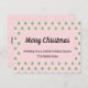 You can personalise black text with your personalised message and name. At the top, you can customise the black script that says "Merry Christmas". There's additional black display text that you can edit to show your name and custom message. This pale pink holiday postcard has a pattern of green Christmas trees on the front. The back is pale pink.