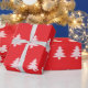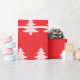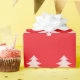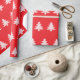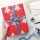 A pattern of pale pink Christmas trees appears on this bright red wrapping paper.