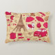 Assorted France themed elements make this adorable pink and tan pillow a must have.