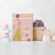 The gentle pink background brings a modern pastel twist to classic holiday wrapping, while the playful tree illustrations offer a cozy, retro-inspired charm. Perfect for design lovers and those who adore a cute, Scandinavian-style Christmas aesthetic.
