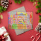 A charming hand-drawn fairytale castle design in soft pastel colors, perfect for creating magical and joyful celebrations. The artwork features whimsical houses, hearts, and dreamy textures, giving it a warm and playful storybook feel.