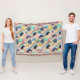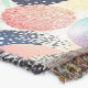 A vibrant and playful abstract pattern blanket featuring flowing waves and arcs in pastel rainbow hues, interspersed with sparkling circles, colourful splatters, and polka-dotted accents. Textured with gold, pink, blue, and green glitter effects and set against a subtly shimmery background, this design bursts with joyful energy and artistic charm. Ideal for creative spirits, playful aesthetics, and colourful celebrations.