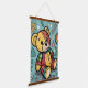 Whimsical Patchwork Christmas Teddy Bear Hanging Tapestry