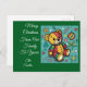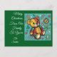 Whimsical Patchwork Christmas Teddy Bear Holiday Postcard