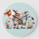 Whimsical Patchwork Cow With Floral Accents Large Clock