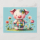 Whimsical Patchwork Pig in Floral Garden Postcard