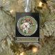 Whimsical Patchwork Santa Folk Christmas Silver Plated Banner Ornament