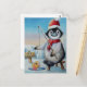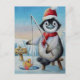 Whimsical Penguin Ice Fishing Watercolor Art Postcard