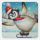 Whimsical Penguin Ice Skating Watercolor Art Square Sticker