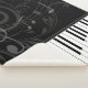 A whimsical musical design with curved piano keyboard keys and musical notes on a subtle flourish pattern in gray on a black background. Ideal for the pianist, piano student or the piano lover. We welcome custom requests for other color combinations, just use the contact us via our GiftsBonanza store with your request prior to purchase and we will be happy to assist.