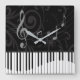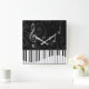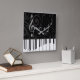 A whimsical musical design with curved piano keyboard keys and musical notes on a subtle flourish pattern in grey on a black background. Ideal for the pianist, piano student or the piano lover.