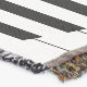 A whimsical musical design with curved piano keyboard keys and musical notes on a subtle flourish pattern in grey on a black background. Ideal for the pianist, piano student or the piano lover.