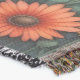 A quality printed throw has its advantages. This is a much finer weave throw than its loopier cousins, and though lighter, it is worth the investment for custom room accessorizing. The back is much prettier than the typical brown, and the fringe on the long sides very vivid, the selvage nicely done. Before photographing, I washed the throw in cold water, delicate, with a thicker woven throw the same size. On tumble dry low, this throw was dry in half the time as the other. This is a very practical quality if you use throws for furniture covers or to wrap up in frequently. The sleekness of the fabric makes it a great layer for accenting or protecting without the feeling of sitting on too much stuff. Perfect for napping or when you feel a light chill coming on. The color printing is beautiful and on this fabric, matched the design and color of my Photoshop image. This is an advantage for blending room fabrics and colors. The fringe on the short sides prints the colors from the design image and therefore varies from the side fringe. I streaked a white fractal line through the plaid pattern to give the illusion of weaving. This printed as crisp as an illusory thread, and put some white in the short side fringe, showing another advantage of print vs loomed- for artistic purposes, line lines, detail, and color integrity can be planned and preserved. My loomed throws have color limitations and more of a needlepoint texture. Print throws reproduce an exact image. The throw felt a little stiff straight out of the package, but this went away in the first delicate wash. Of course I searched the wash water for ink or bleeding and there was none.