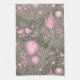 Whimsical Pink and Grey Hearts, Birds and Flowers Tea Towel