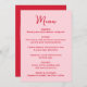 Whimsical Pink and Red Heart Wedding Menu