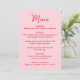 Share your reception menu in style with this whimsical wedding menu card designed to coordinate with modern and playful wedding stationery. The front of the menu features “Menu” displayed in a handwritten red script with your wedding menu details shown below on a pink background, making it a charming addition to place settings or reception tables. The back of the wedding menu card features a hand-drawn pink heart surrounding the couple’s names and wedding date for a cohesive and personalized look. Perfect for Valentine’s weddings, February weddings, and romantic celebrations, this customizable wedding reception menu adds personality while helping guests easily view the menu at your reception.