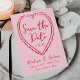 Set the tone for your romantic celebration with this whimsical Valentine's Day-inspired save the date! The design features "Save the Date" in bold red handwritten script, encircled by a hand-drawn heart on a pink background, blending retro charm with a unique, playful touch. Perfect for February weddings or love-filled themes, this announcement is fully customisable—add your names, wedding date, and location to make it truly personal. Capture the excitement of your big day and give your guests a heartfelt preview they'll adore!