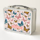 Whimsical Pink Butterfly Pattern Girl's Metal Lunch Box