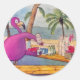 Whimsical Pink Flamingo Pours Party Drinks Beach Classic Round Sticker