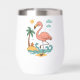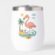 Sip in tropical style with this whimsical flamingo wine tumbler! It features a cheerful beach scene complete with a palm tree, waves, and a pink flamingo basking in the sun. The stemless design is easy to hold and comes with a secure, splash-proof lid—making it perfect for poolside lounging, beach picnics, or cosy evenings at home. Holds 11 oz of your favourite beverage with flair.